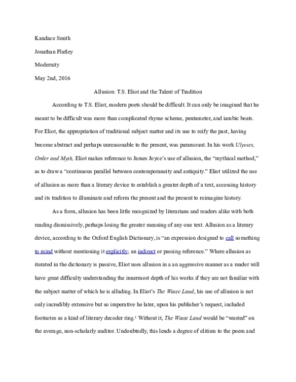 Doc Allusiont S Eliotandthetalentoftradition Docx Ezra Smith Academia Edu