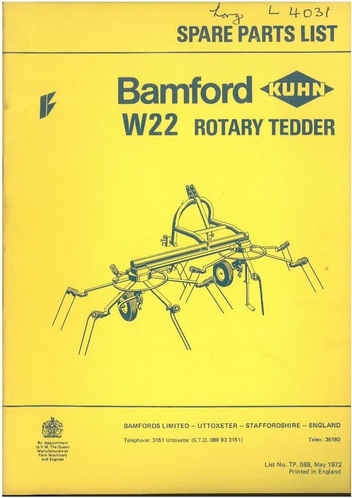 Bamford Kuhn W22 Rotary Tedder Parts Manual