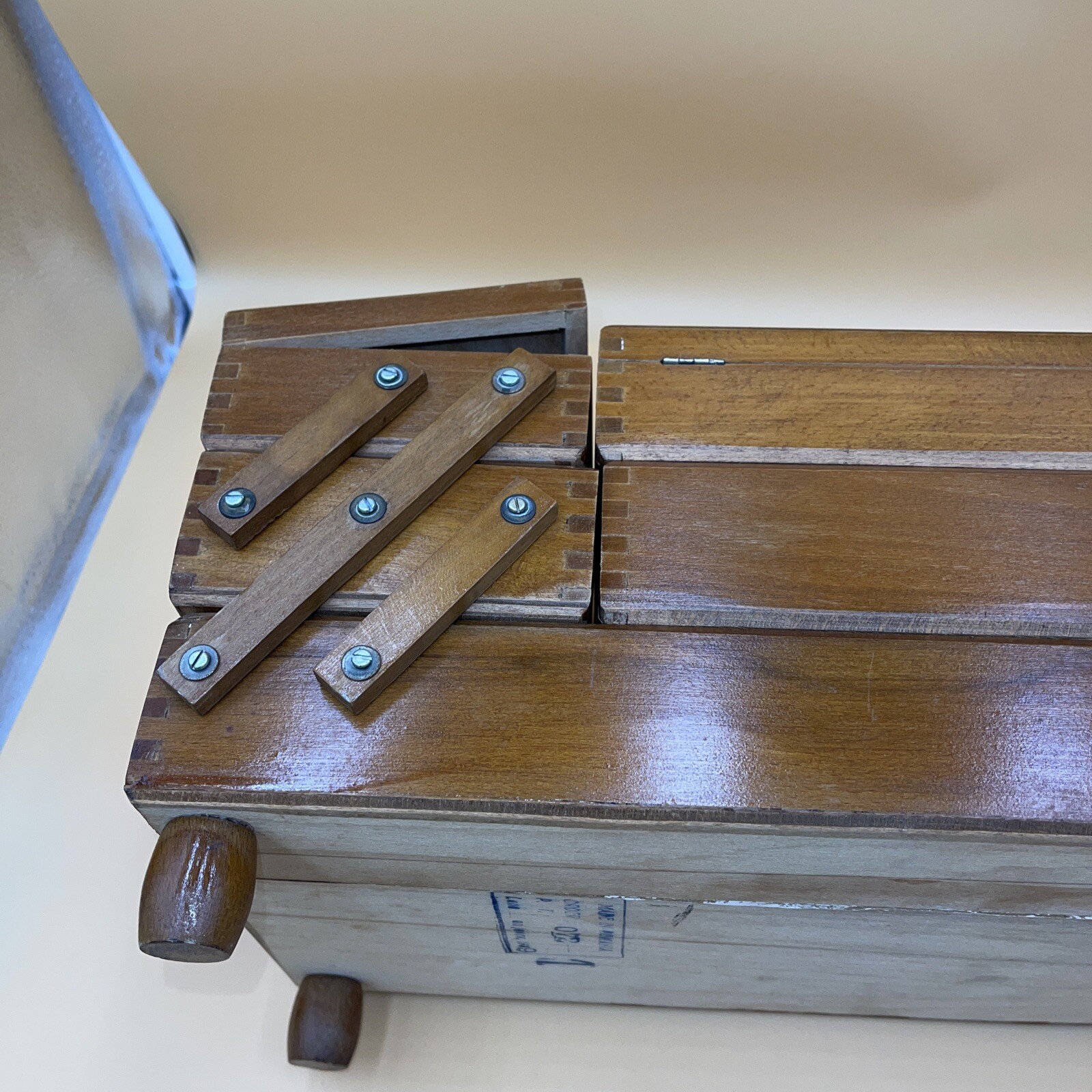 Sewing Wood Accordion Cantilever Sewing Box Basket 17 X 18 X 9 Poland Ebay